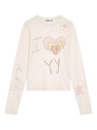 crew neck T-shirt Highlights - White - Beaded embellishment - Flower motif - Swan motif - Long sleeves - Round neck Imported Composition Cotton 95%, Elastane 5% Washing instructions Read Manufacturer Guidelines