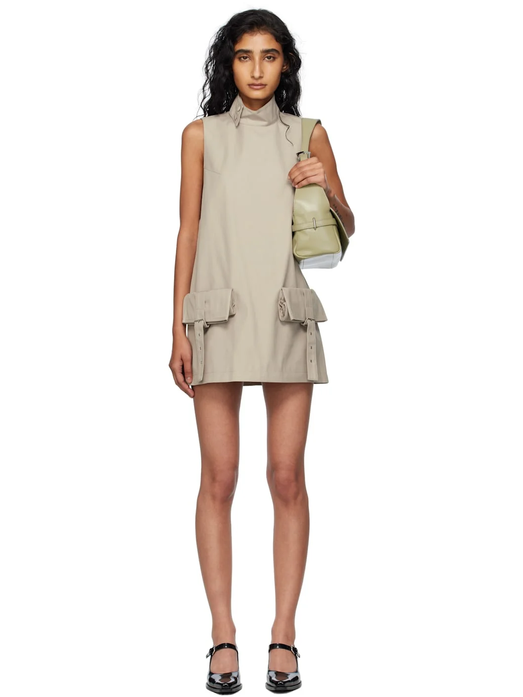 Cotton-blend twill minidress. · Button fastening at stand collar · Darts at chest · Pin-buckle cargo pockets at front · Concealed zip closure at back · Full satin lining Supplier color: Beige Body: 50% cotton, 50% polyester. Lining: 100% polyester. Made in South Korea 252731F052000