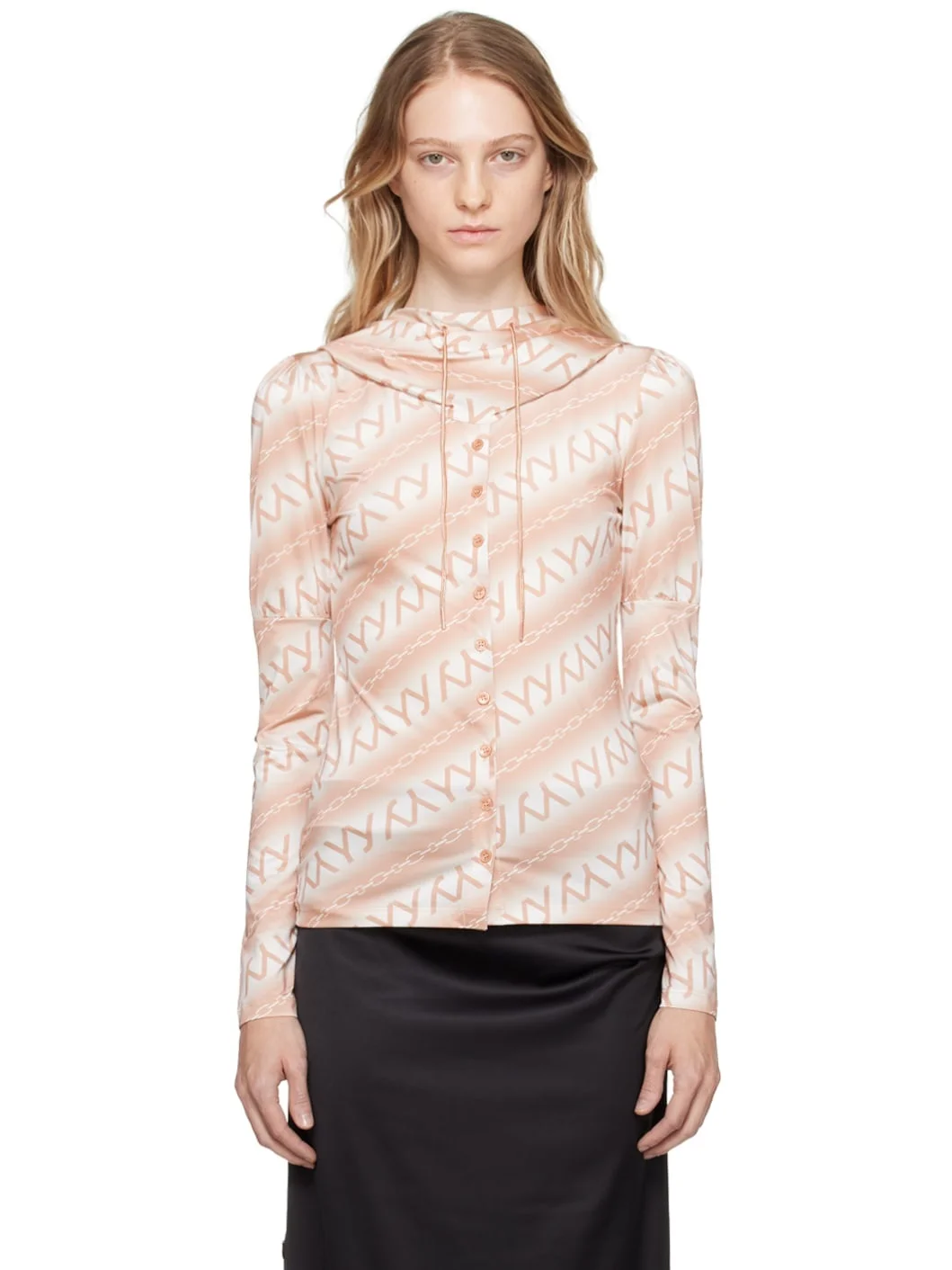 Stretch polyester jersey hoodie. Logo graphic pattern printed throughout. · Drawstring at hood · Button closure · Puffed sleeves Supplier color: Beige 92% polyester, 8% polyurethane. Made in South Korea 232731F097000