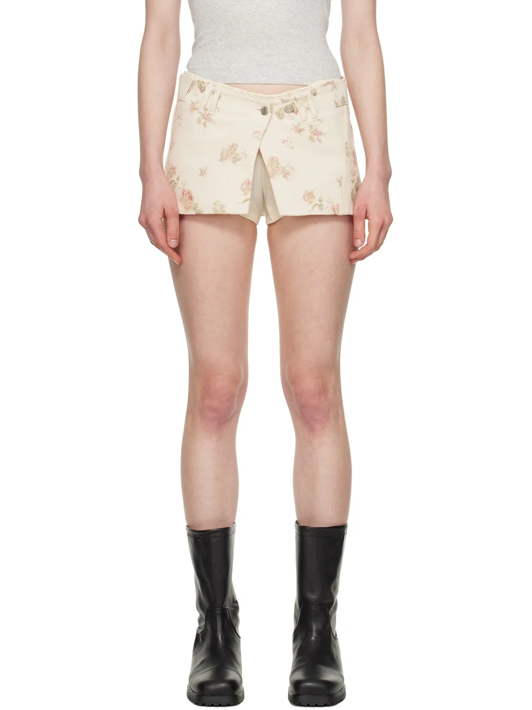 Cotton twill miniskirt. Detachable polyester-blend crepe short-style underlay. · Floral pattern printed throughout · Belt loops · Button fastening at waistband · Two-pocket styling · Leather logo patch at back waistband Supplier color: Beige Body: 100% cotton. Lining: 20% cotton, 80% polyester. Trim: 64% cotton, 33% polyester, 3% polyurethane. Made in South Korea 251731F090000