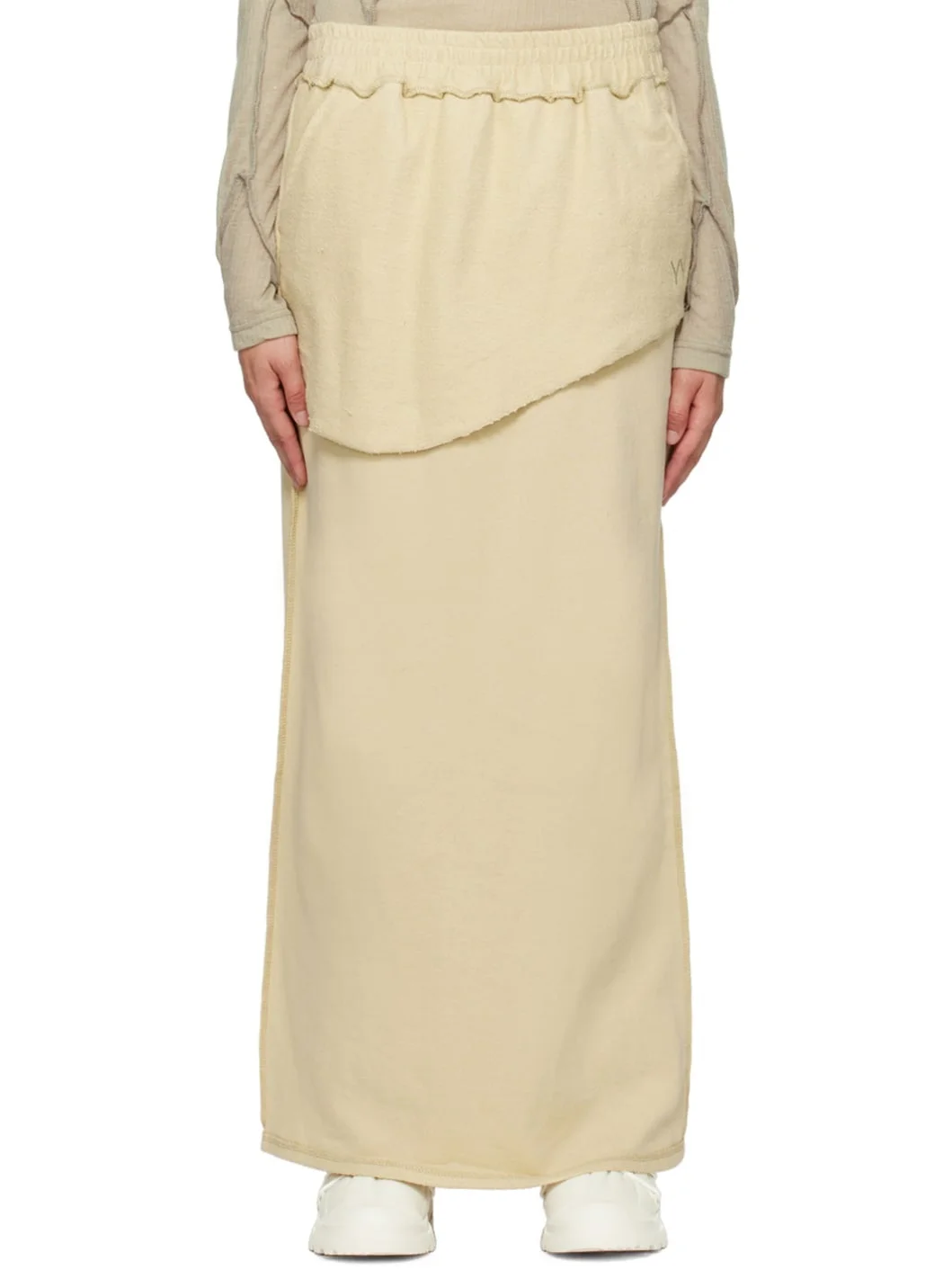 French terry skirt. · Layered construction · Elasticized waistband · Raw edge at overlay · Zip vent at side seam · Logo embroidered at back Supplier color: Yellow Body: 100% cotton. Lining: 80% cotton, 20% polyester. Made in South Korea 232731F093006
