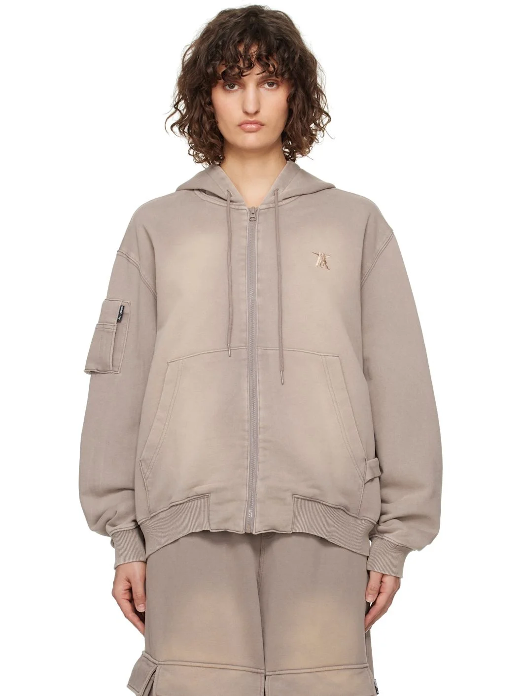 Cotton-blend French terry hoodie. Fading throughout. - Drawstring at hood - Zip closure - Logo embroidered at chest - Patch pockets - Hammer loop at hem - Rib-knit hem and cuffs - Dropped shoulders - Utility pocket with logo flag at sleeve Supplier color: Beige