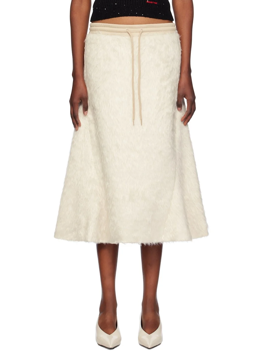 Faux-fur midi skirt. · Drawstring at rib-knit waistband · Three-pocket styling · Flared hem · Full satin lining Supplier color: Cream Body 1: 100% polyester. Body 2: 60% cotton, 40% polyester. Lining: 20% cotton, 80% polyester. Made in South Korea 242731F092001