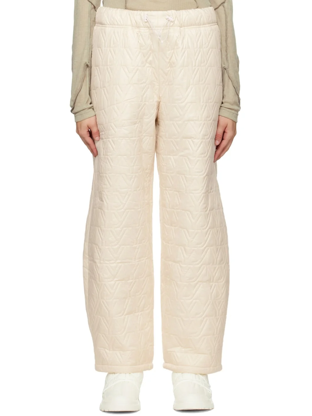 Quilted polyester satin pants. · Bungee-style drawstring at elasticized waistband · Two-pocket styling · Fully lined Supplier color: Ivory Body: 100% polyester. Lining: 100% polyester. Made in South Korea 232731F087013