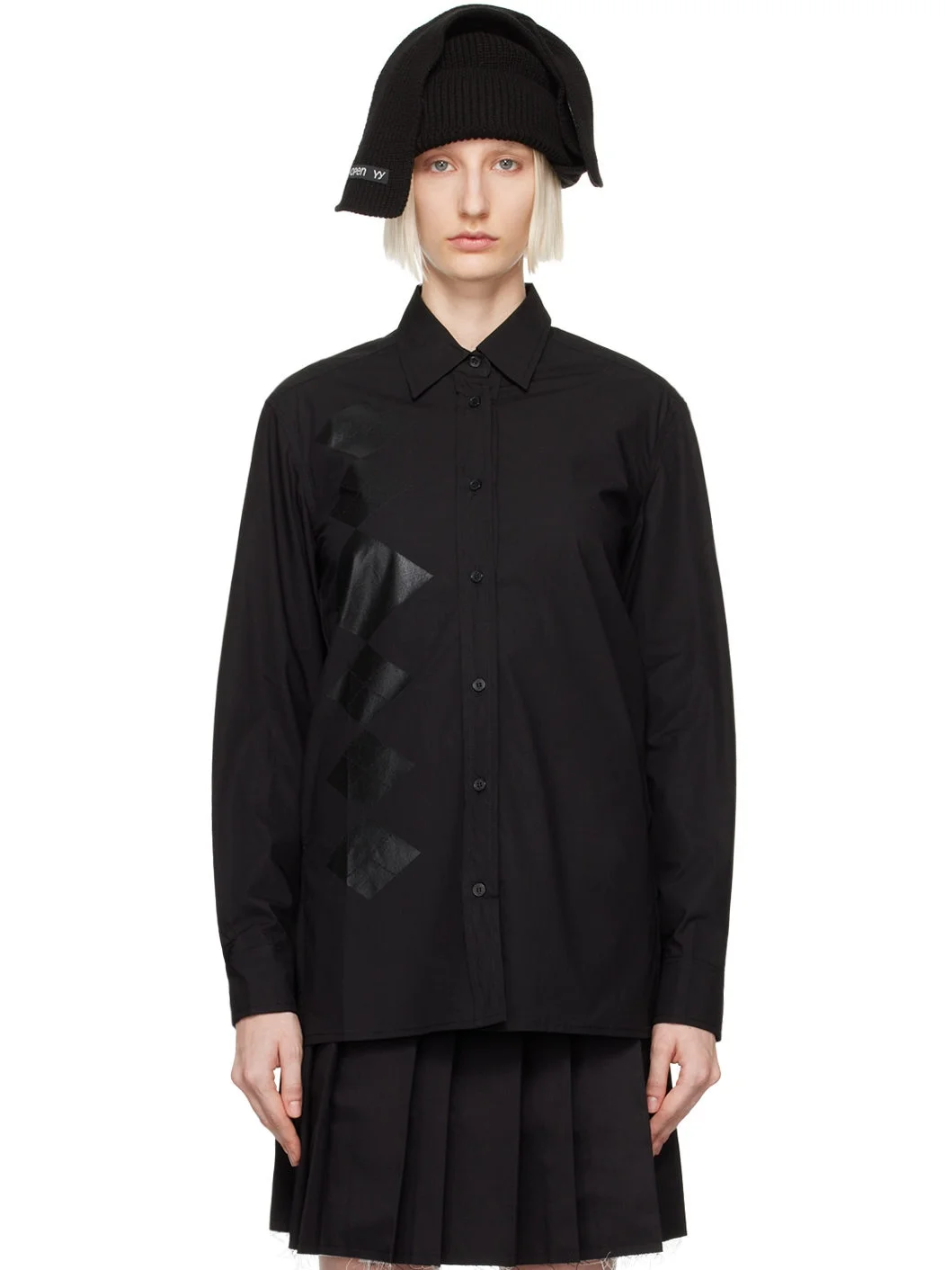Relaxed-fit cotton poplin shirt. · Spread collar · Button closure · Argyle pattern printed at front · Vented side seams · Adjustable single-button barrel cuffs · Logo embroidered at back collar Supplier color: Black 100% cotton. Made in South Korea 242731F109001