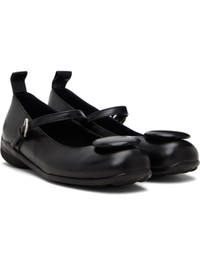Buffed leather Mary-Jane style flats. · Padded applique at square toe · Pin-buckle strap at vamp · Pull-loop at heel collar · Grained leather lining · Treaded rubber sole Supplier color: Black Upper: leather. Sole: rubber. Made in South Korea 261731F118003
