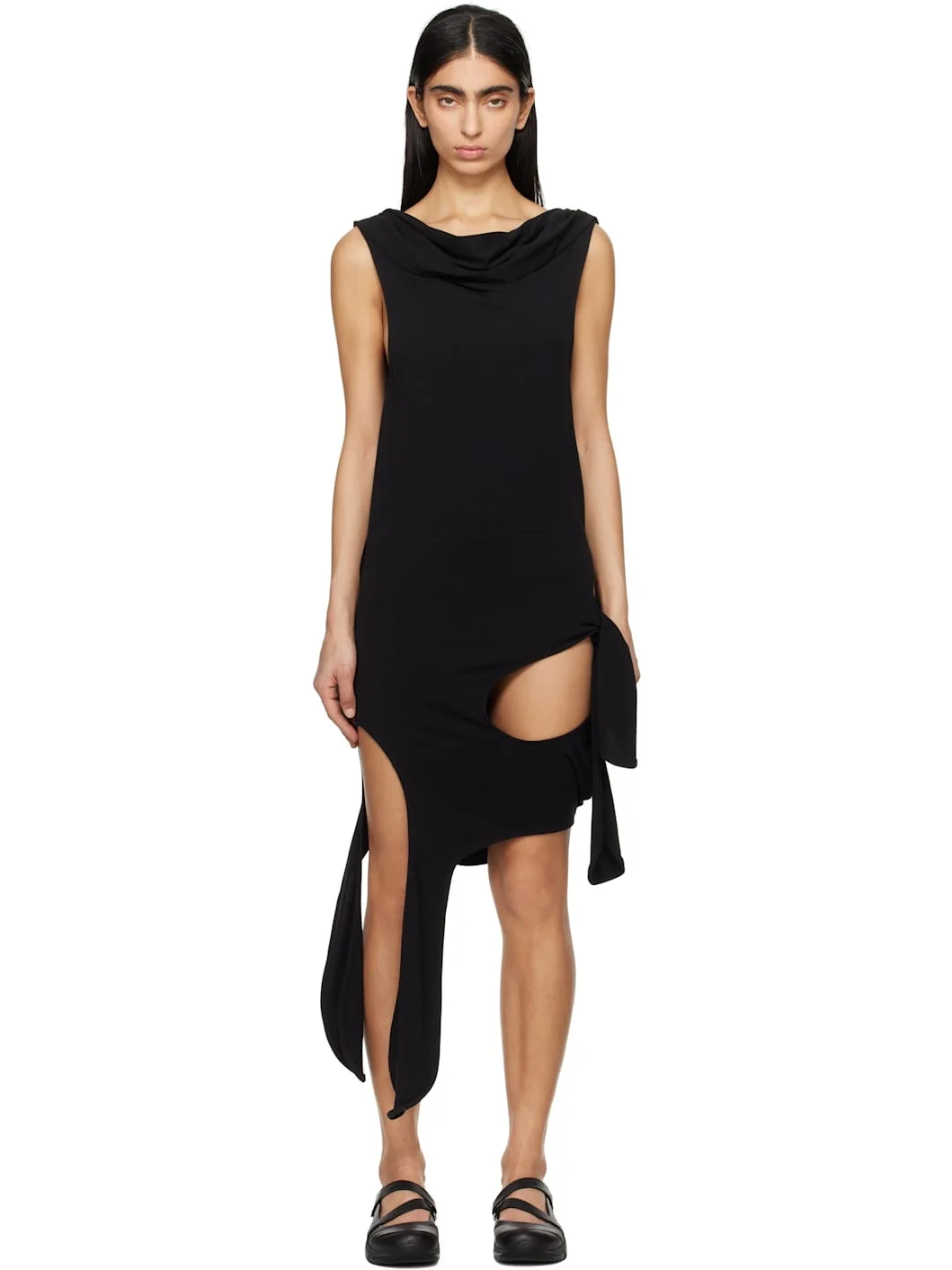 Stretch cotton jersey minidress. - Cowl neck - Asymmetric hem - Cutout at front and side seams - Self-tie fastening at side seams - Extended trim with raw edge at back Supplier color: Black