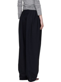 Stretch twill trousers. · Wide leg · Gathering at waist · Belt loops · Three-pocket styling · Curved seam at leg · Panel at knee · Utility pocket at outseam · Press-stud tab at cuffs Supplier color: Black 77% polyester, 18% rayon, 5% polyurethane. Made in South Korea 261731F087008