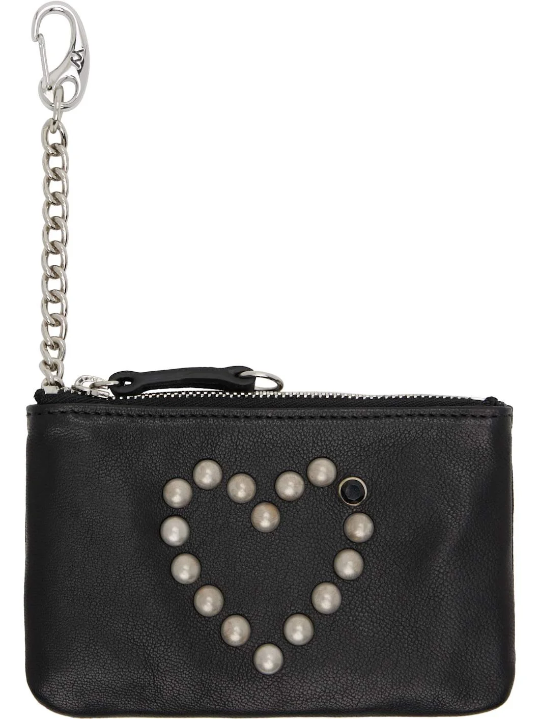 Grained sheepskin wallet. · Studded graphic at face · Logo-embossed loop at back face · Zip closure · Integrated curb chain lanyard clasp · Twill lining · H3.5" x W5" x D0.5" Supplier color: Black Sheepskin. Made in South Korea 252731F040000