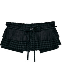 Cotton flannel and satin belt. · Check pattern, pleats, and frayed edges throughout · Two zip pockets at front · Self-tie fastening · W10.5" Supplier color: Black Body 1: 100% cotton. Body 2: 100% polyester. Pocket lining: 100% polyester. Made in South Korea 252731F001002