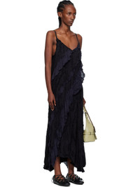 Cotton- and linen-blend twill maxi dress. · Frayed edges, laddering, and ruffles throughout · V-neck · Asymmetrical hem · Concealed zip closure at side · Adjustable spaghetti straps Supplier color: Black Body 1: 65% cotton, 25% linen, 10% rayon. Body 2: 100% polyester. Made in South Korea 252731F054003