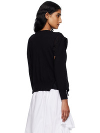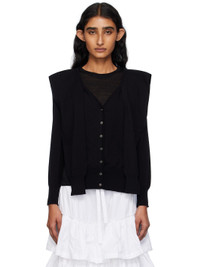 Knit wool- and cotton-blend cardigan. · V-neck · Button closure · Rib-knit hem and cuffs · Vented side seams · Cutout at armscyes · Alternate sleeves · Logo embroidered at sleeve Supplier color: Black 50% wool, 50% cotton. Made in South Korea 252731F095002