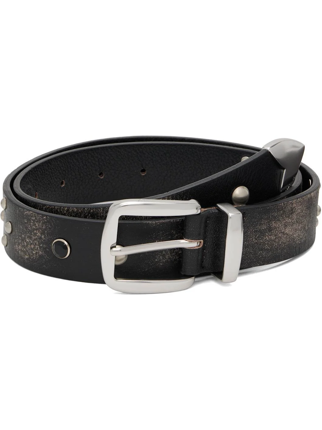 Buffed leather belt. · Fading, crystal-cut accents, and studs throughout · Hardware at end · Pin-buckle fastening · W1.25" Supplier color: Brown Leather. Made in South Korea 252731F001000
