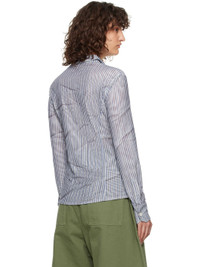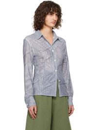 Double-faced nylon-blend mesh shirt. Stripes and trompe l'ail graphic printed throughout. - Semi-sheer - Spread collar - Button closure - Darts at front and back - Seam pockets - Shirttail hem - Pleats at single-button barrel cuffs Supplier color: Blue