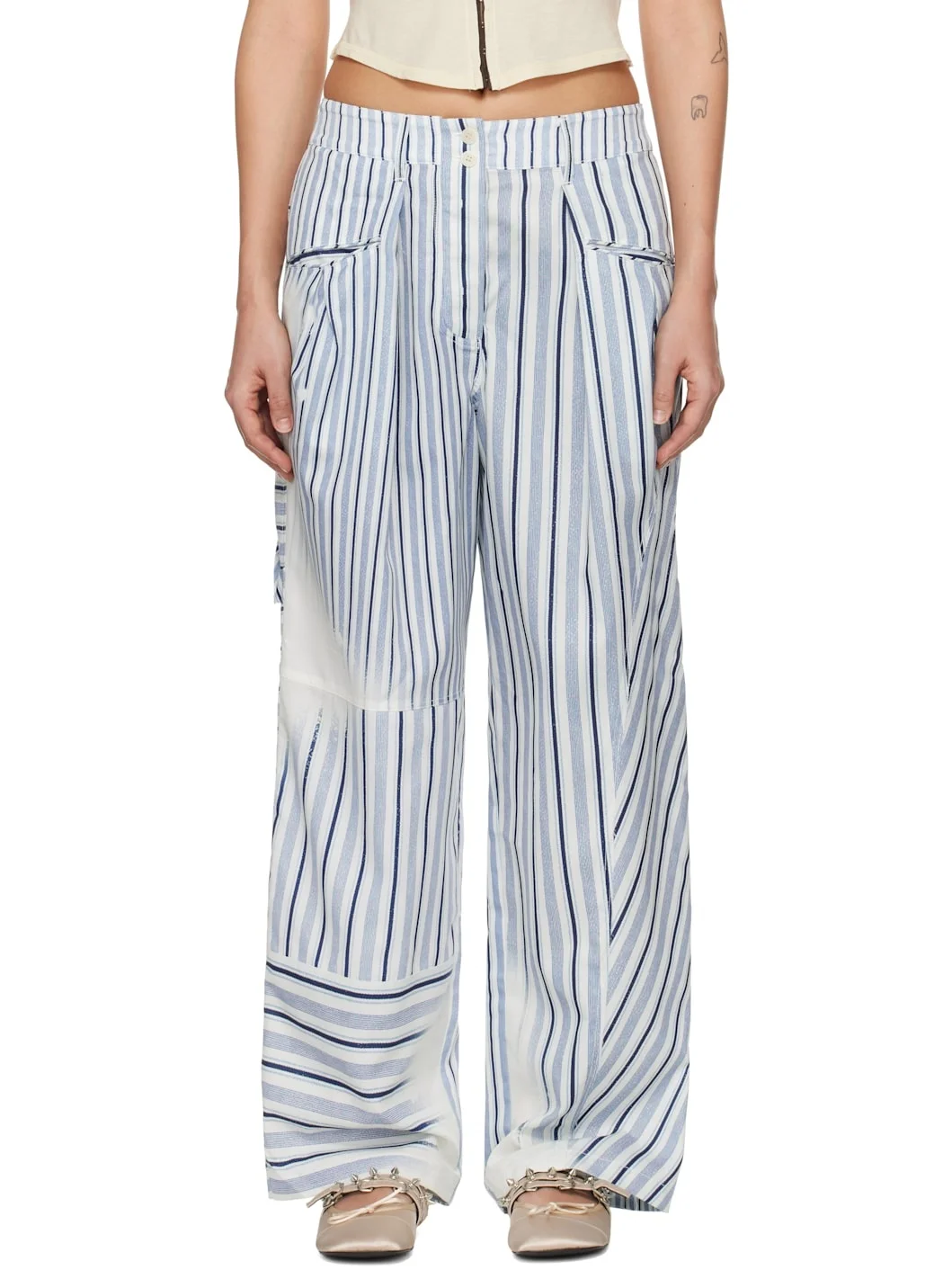 Polyester satin trousers. Stripes and faded detailing printed throughout. - Belt loops at partially elasticized waistband - Four-pocket styling - Button-fly - Pleats at front - Hammer loop at outseam Supplier color: Blue