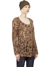 Relaxed-fit pointelle knit acrylic- and wool-blend cardigan. · Scoop neck · Button closure · Scalloped edge at hem Supplier color: Brown 53% acrylic, 47% wool. Made in South Korea 242731F095001
