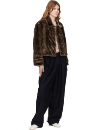 Faux-fur jacket. · Spread collar with faux-leather undercollar · Button closure · Cropped hem with rib-knit trim at back · Welt pocket at interior · Full satin lining Supplier color: Brown Body: 80% acrylic, 20% polyester. Lining: 100% polyester. Made in South Korea 252731F063007