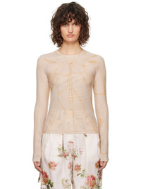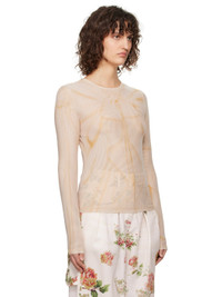 Brown Ribbon Print Mesh Long Sleeve T-shirt