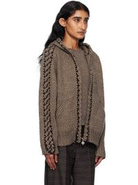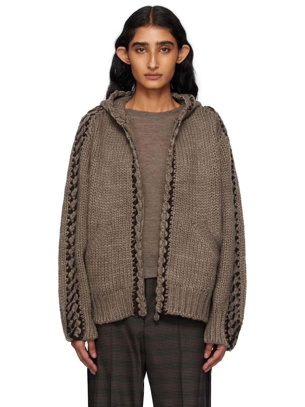 Knit wool-blend hoodie. · Jacquard detailing throughout · Zip closure · Welt pockets at front · Rib-knit hem and cuffs · Raglan sleeves Supplier color: Brown Body 1: 60% acrylic, 40% wool. Body 2: 50% wool, 35% acrylic, 15% polyester. Made in South Korea 252731F097002