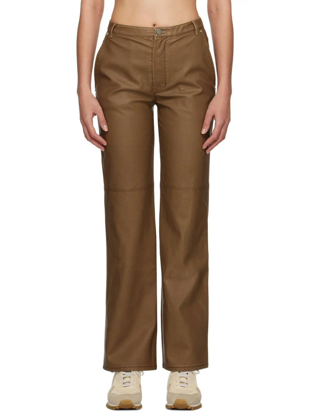 Grained faux-leather trousers. Subtle distressing throughout. · Belt loops · Four-pocket styling · Zip-fly · Logo-engraved silver-tone hardware Supplier color: Brown Body: 65% polyurethane, 35% rayon. Made in South Korea 231731F087018