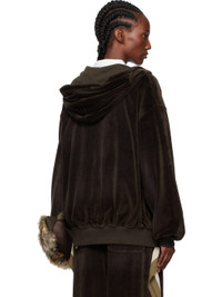 Cotton-blend velour hoodie. · Drawstring at hood · Two-way zip closure · Logo embroidered at chest · Rib-knit hem and cuffs · Dropped shoulders · Jersey lining at hood Supplier color: Brown Body 1: 76% cotton, 24% polyester. Body 2: 95% cotton, 5% polyurethane. Trim: 100% cotton. Made in South Korea 252731F097006