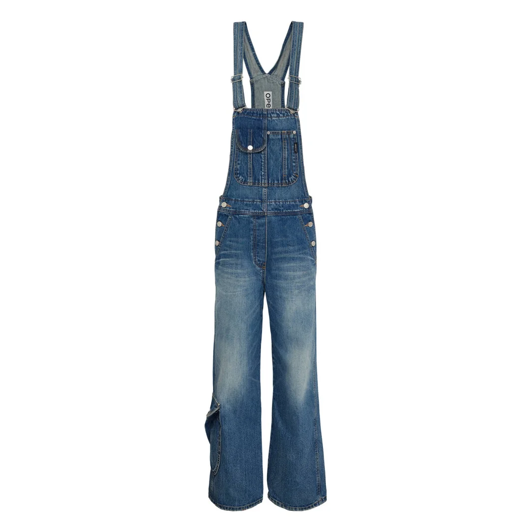 600076890BLU00M / YY261PT012/00/BLU - Adjustable shoulder straps with buckle hardware - Bib-front design with chest pocket - Side button closures - Multiple cargo pockets - Wide-leg relaxed fit - Medium-wash denim construction - Classic overall styling OPEN YY Cargo Pocket Denim Overalls deliver versatile streetwear functionality with contemporary silhouette and practical storage solutions. Crafted from premium medium-wash denim with subtle fading effects, featuring adjustable shoulder straps and multiple cargo pockets throughout. The relaxed wide-leg cut and classic bib-front design create a modern take on workwear-inspired fashion.