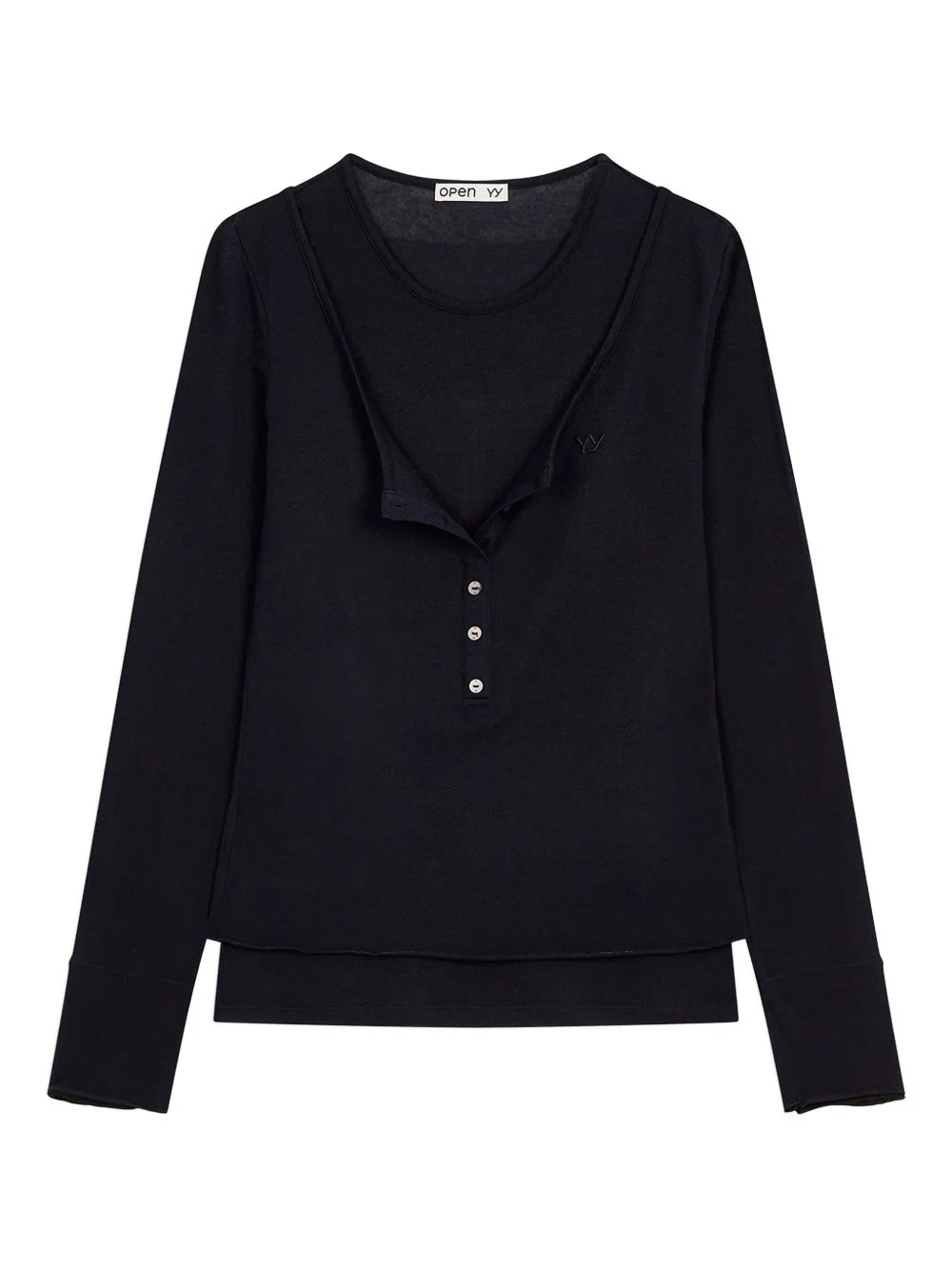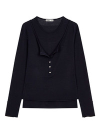 crew neck button-detail T-shirt Highlights - Blue - Button fastening - Long sleeves - Crew neck - Layered design Imported Composition Silk 64%, Wool 27%, Elastane 9% Washing instructions Read Manufacturer Guidelines