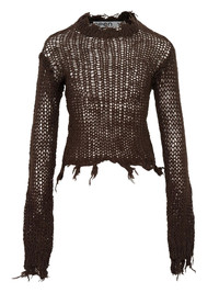 frayed-hem knit jumper Highlights - Brown - Open knit - Frayed hem - Long sleeves - Round neck - Relaxed fit Imported Composition Wool 100% SIZE & FIT FittingInformation Designed to be unstructured, offering a loose fit throughout Made with a midweight knit, this piece offers some stretch