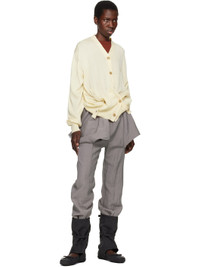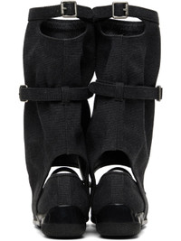 Mid-calf canvas boots in gray. · Cutouts throughout · Square toe · Bow applique at vamp · Elasticized strap at vamp · Pin-buckle strap at collar and outer side · Grained leather lining · Treaded rubber sole Supplier color: Black Upper: textile. Sole: rubber. Made in South Korea 251731F118004