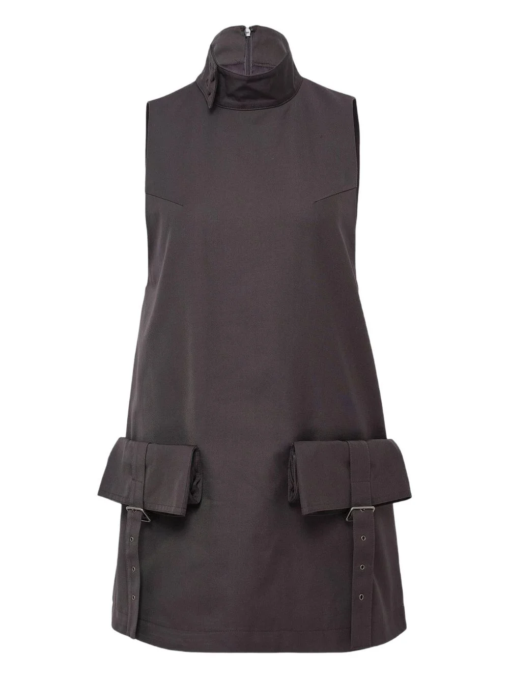 pocket-detail mini dress Highlights - Charcoal grey - High neck - Sleeveless - Mini length - Flap pockets - Buckle fastening Imported Composition Outer: Cotton 50%, Polyester 50% Lining: Polyester 100%