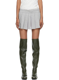 French terry miniskirt. · Knife pleats and sheer organza trim throughout · Wrap construction · Raw edge at waistband and hem · Single-pocket construction · Velcro closure at side seam Supplier color: Gray Body: 57% cotton, 43% polyester. Trim: 100% polyester. Made in South Korea 252731F090003