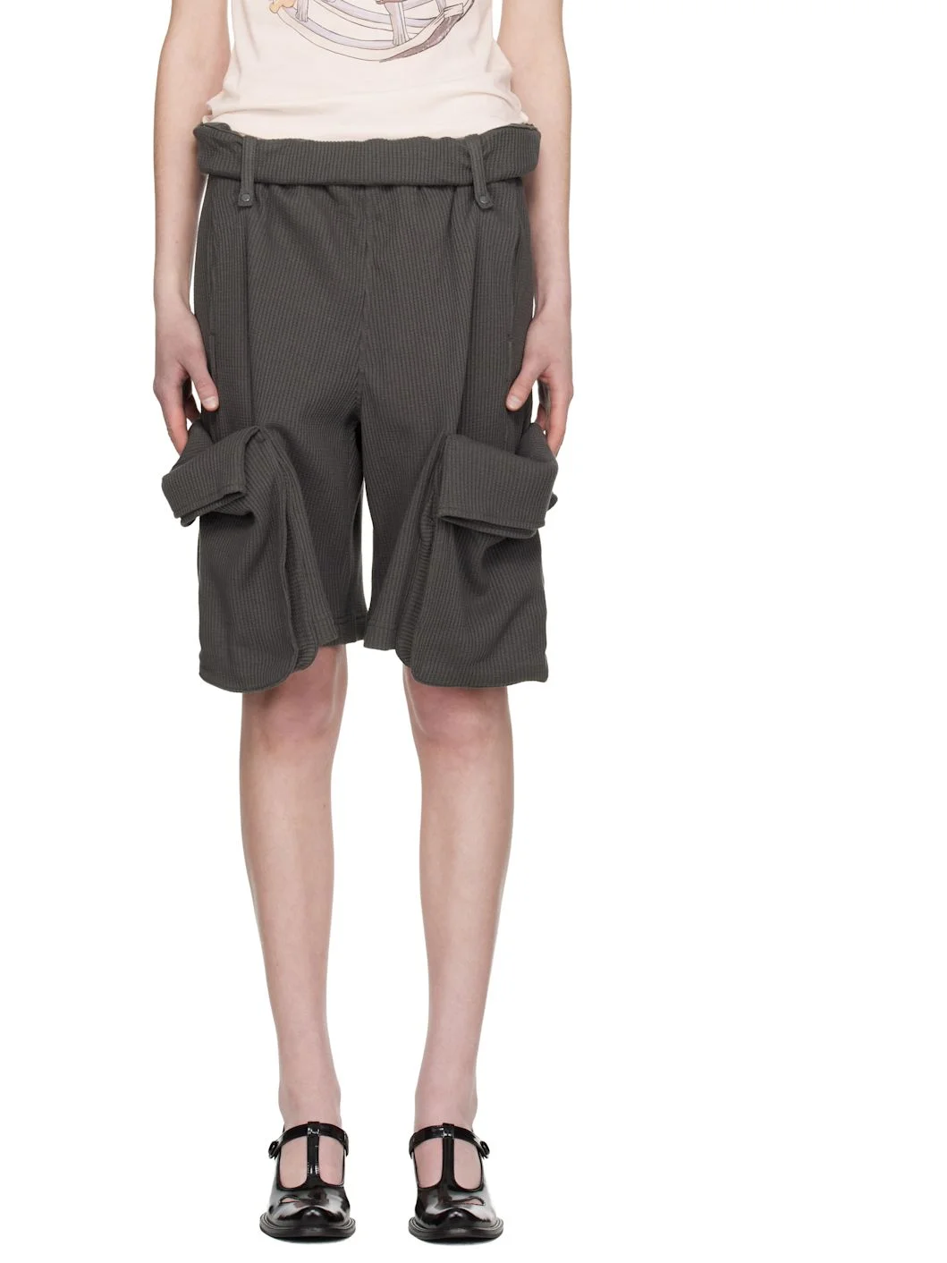 Waffle-knit cotton shorts. · Fixed rolled waistband · Concealed drawstring at waistband · Belt loops · Two-pocket styling · Cargo pocket at outseams Supplier color: Charcoal 100% cotton. Made in South Korea 261731F088000