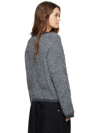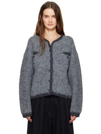 Shag-knit stretch cardigan. · Rib-knit V-neck, hem, and cuffs · Button closure · Welt pockets at chest · Dropped shoulders Supplier color: Gray Body: 70% polyester, 21% nylon, 8% wool, 1% polyurethane. Trim: 50% wool, 35% nylon, 15% polyester. Made in South Korea 252731F095010