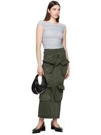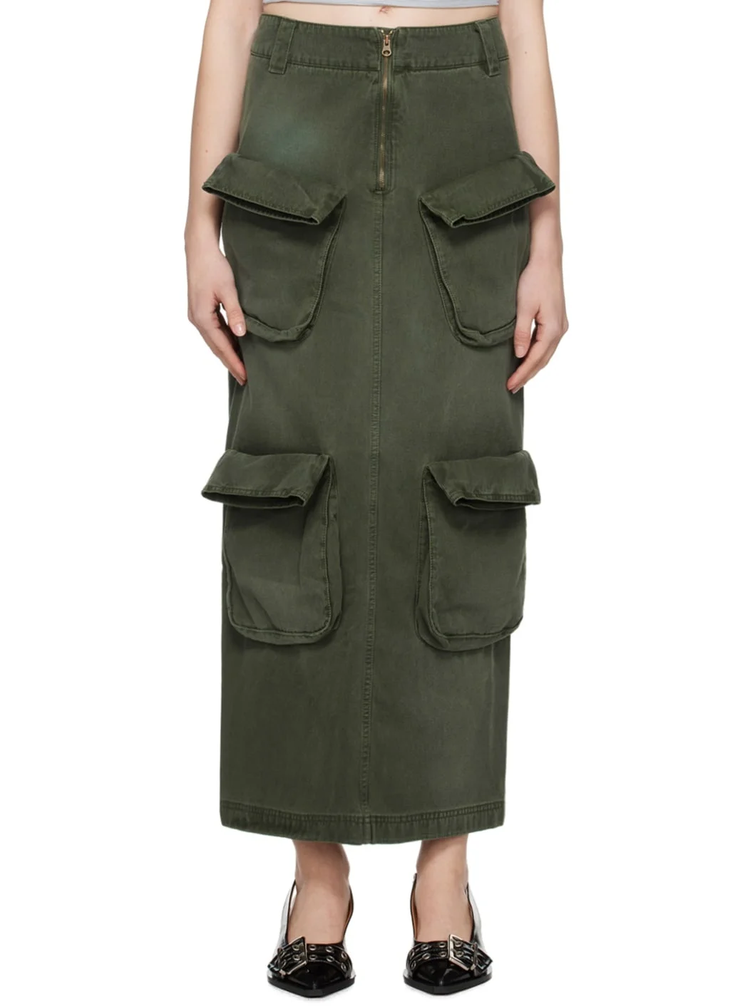 Non-stretch denim skirt. Cargo pockets and subtle fading throughout. · Belt loops · Exposed zip-fly · Press-stud tab at back waistband · Zip vent at back Supplier color: Khaki 100% cotton. Made in South Korea 241731F093000
