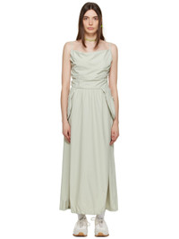 Polyester satin dress. Gathering throughout. · Square neck · Drawstring pockets at waist · Elasticized hem · Spaghetti straps · Self-tie straps at low back · Concealed zip closure at back · Unlined Supplier color: Mint 100% polyester. Made in South Korea 231731F054013