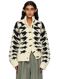 Off-White & Black Hound's Tooth Star Cowichan Cardigan