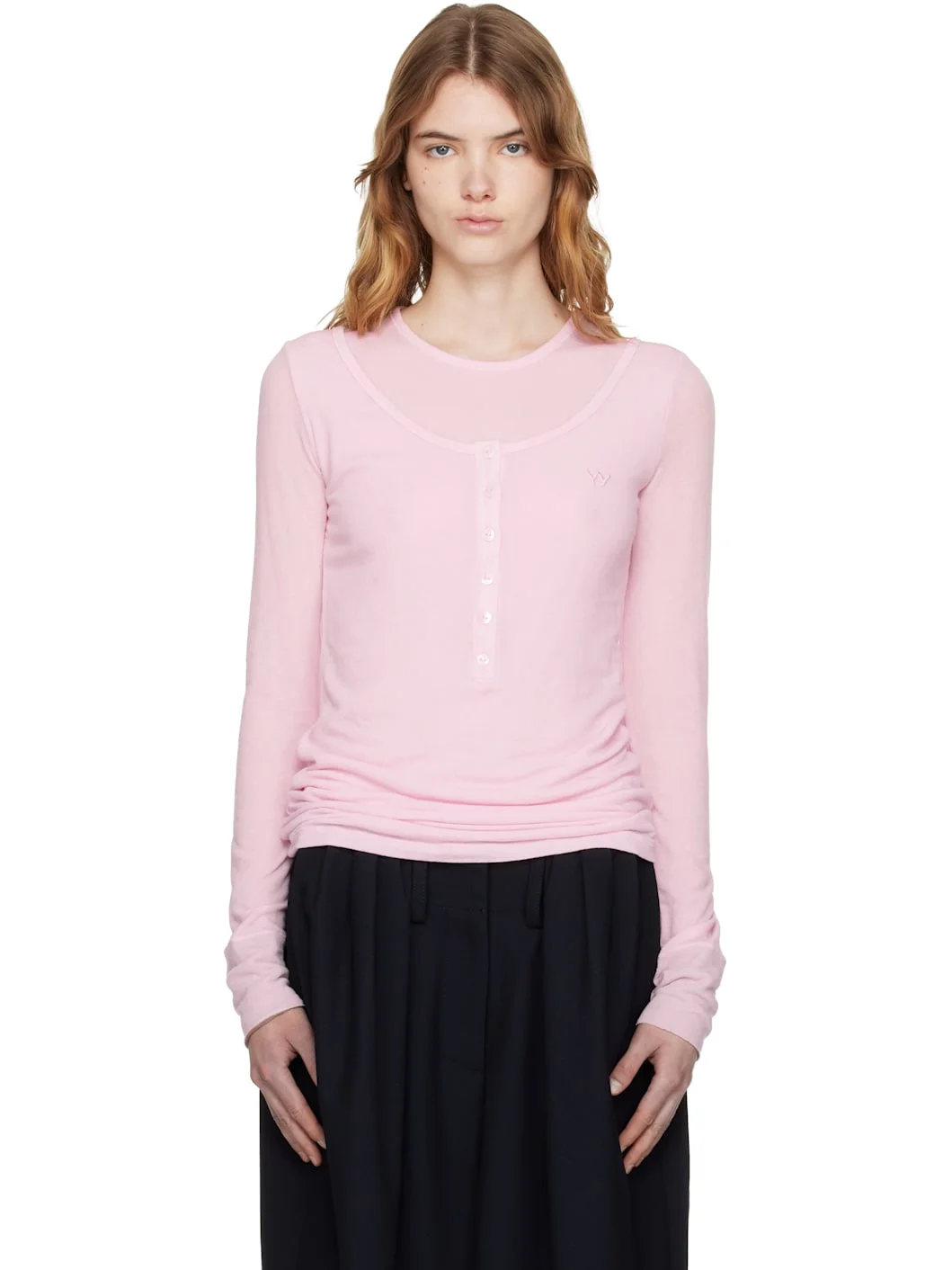 Stretch tencel- and wool-blend henley. · Mock layered construction · Lightweight semi-sheer underlayer · Crewneck · Scoop neck with button placket · Embroidered logo at chest · Concealed mesh trim at cuffs Supplier color: Pink 64% tencel, 27% wool, 9% polyurethane. Made in South Korea 252731F110011