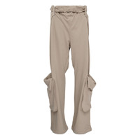 600076889BGE00M / YY261PT010/00/BEI - Rolled waistband with tie closure - Side cargo pockets with flap details - Relaxed straight leg fit - Cotton fleece construction - Adjustable waist ties - Ribbed ankle cuffs OPEN YY Rolled Waist Sweat Cargo Pants deliver contemporary streetwear comfort with elevated utility design. Crafted from premium cotton fleece in neutral beige, featuring distinctive rolled waistband construction and functional cargo pocket detailing. The relaxed fit and innovative waist design create a modern silhouette that bridges comfort and style.