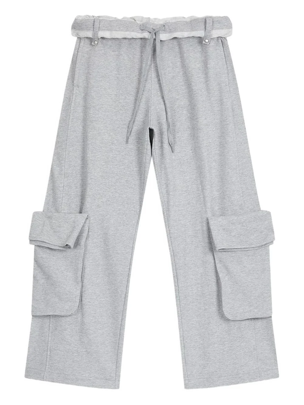 rolled-waist cargo trousers Highlights - Grey - Rolled waist detail - Drawstring fastening - Cargo pockets - Flap pockets - Straight leg Imported Composition Cotton 100% Washing instructions Read Manufacturer Guidelines