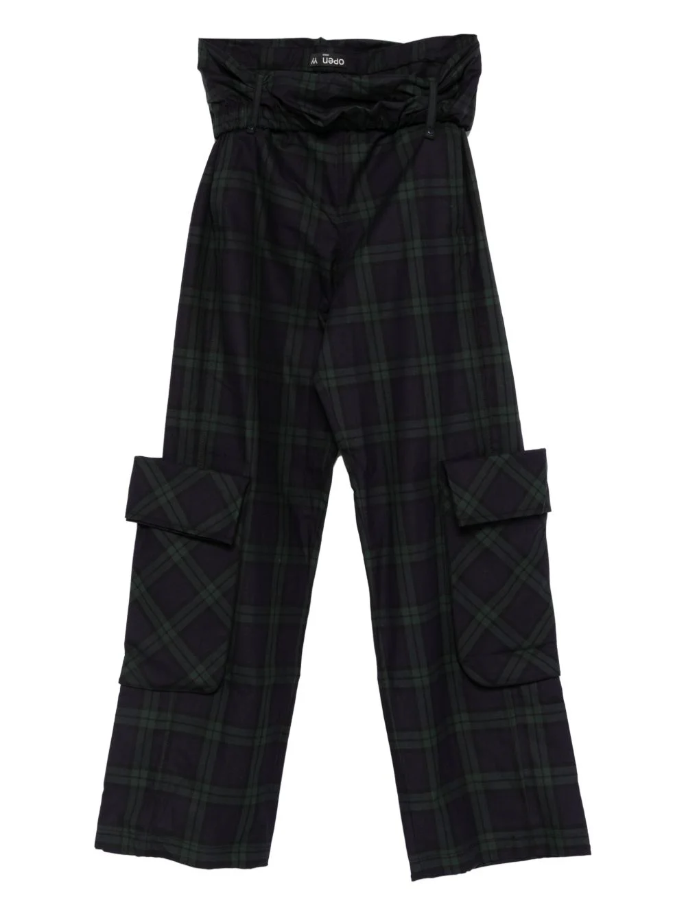 rolled-waist tartan cargo pants Highlights - Green - Cotton - Tartan pattern - Rolled waist - Cargo pockets - Belt loops Imported Composition Outer: Cotton 100% Lining: Polyester 80%, Cotton 20% SIZE & FIT Model measurements Height 5 ft 11 in(1.8 m) Bust/Chest 32.28 in(82 cm) Hips 35.82 in(91 cm) Waist 25.19 in(64 cm) Washing instructions Hand Wash