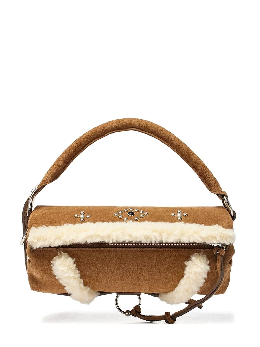 Sherling Stud Pillow tote bag Highlights - Brown - Shearling trim - Stud embellishment - Top handle - Ring detail - Adjustable strap Imported Composition Outer: Suede 100%, Polyester 70%, Wool 30%