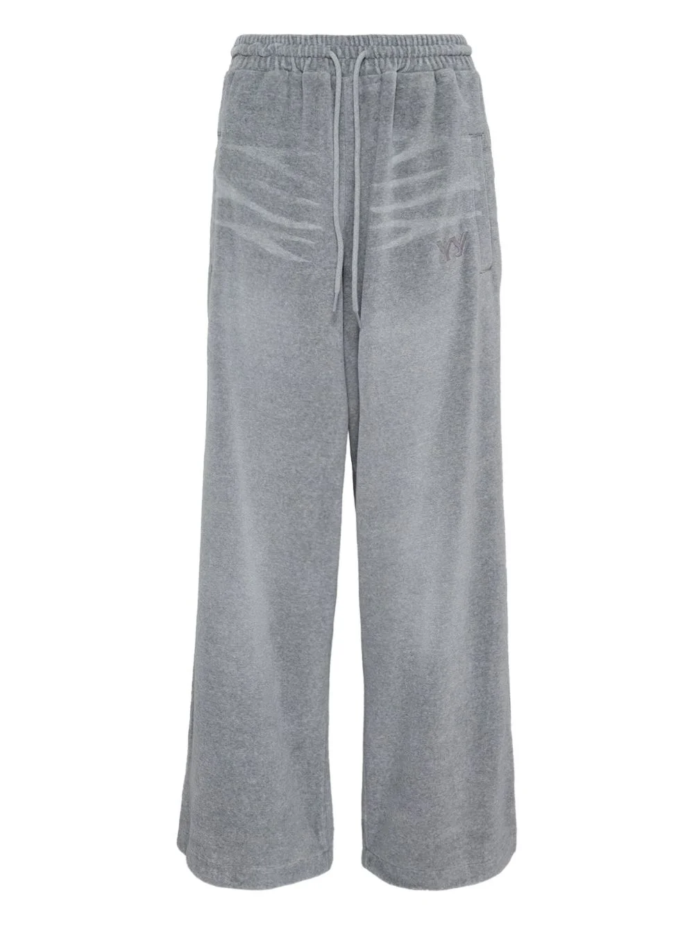 velvet-texture track pants Highlights - Grey - Velour texture - Wide leg - Drawstring waistband - Patch pockets - Embroidered logo Imported Composition Outer: Cotton 76%, Polyester 24% Lining: Cotton 100% Washing instructions Machine Wash
