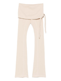 waffle tie trousers Highlights - Beige - Waffle knit - Tie detail - Layered design - Flared leg - Panelled design Imported Composition Outer: Cotton 95%, Polyurethane 5% Lining: Cotton 100% SIZE & FIT Model measurements Height 5 ft 10 in(1.78 m) Bust/Chest 33.46 in(85 cm) Hips 36.22 in(92 cm) Waist 23.22 in(59 cm) Washing instructions Machine Wash