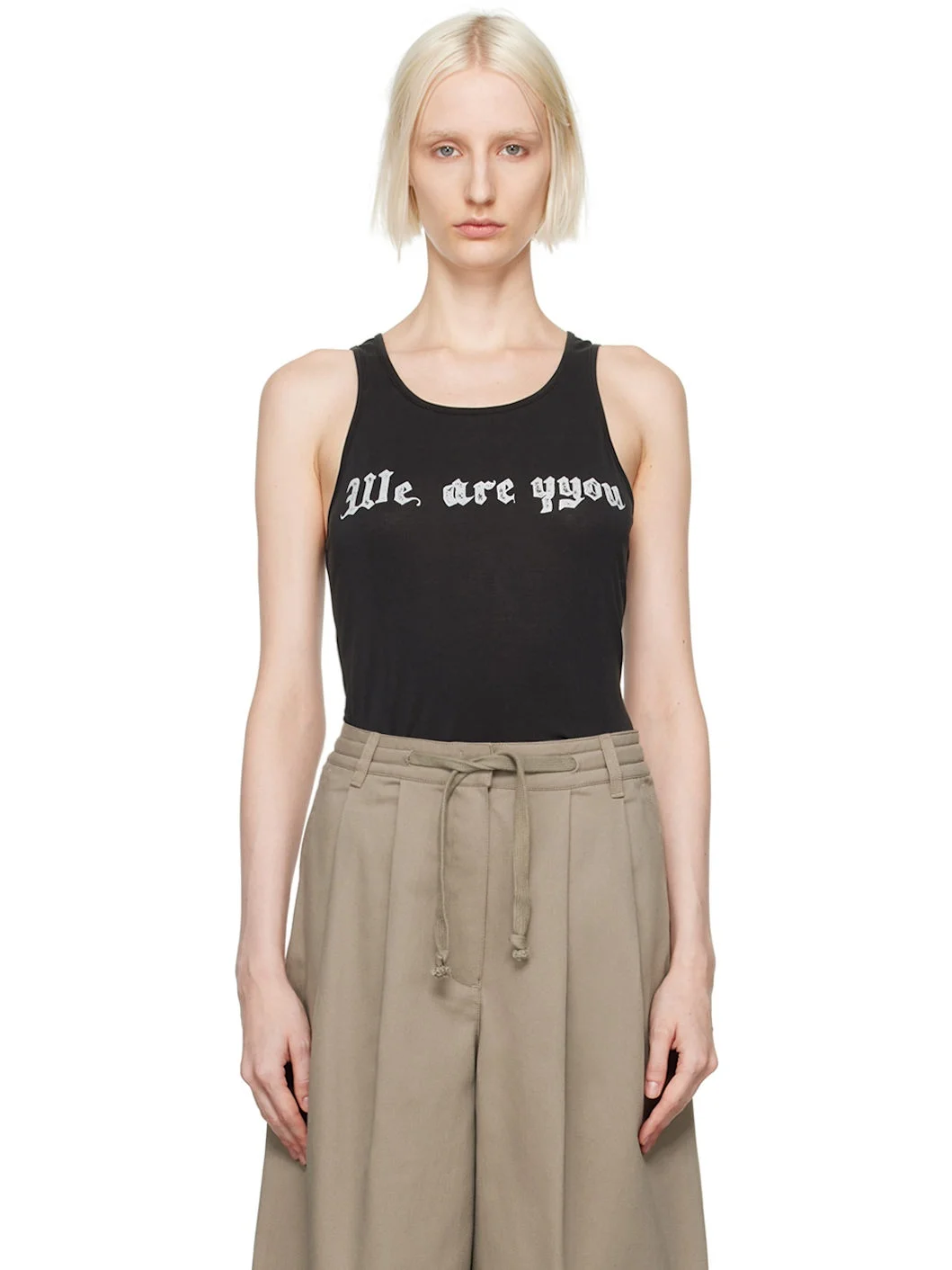 Modal-blend jersey tank top. · Scoop neck · Text printed at chest · Logo flag at side seam · Central seam at back Supplier color: Black 75% modal, 25% polyester. Made in South Korea 242731F111001