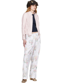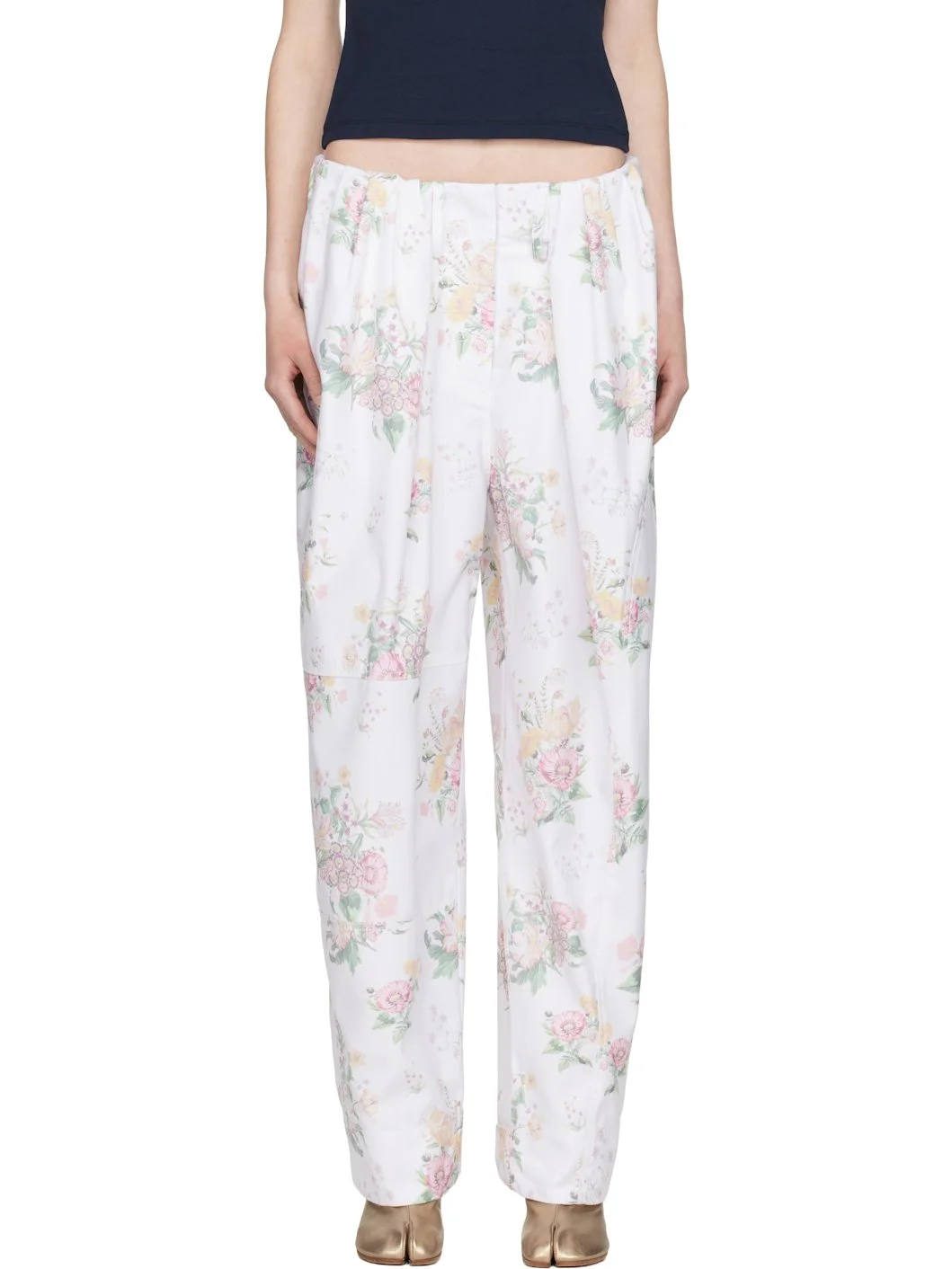 Satin trousers. · Wide leg · Gathering at waist · Belt loops · Three-pocket styling · Curved seam at leg · Panel at knee · Utility pocket at outseam · Press-stud tab at cuffs Supplier color: Multi 70% polyester, 30% rayon. Made in South Korea 261731F087007