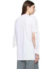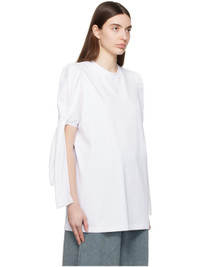 Cotton ribbed jersey T-shirt. · Rib knit crewneck · Logo embroidered at chest · Gathering at puff sleeves · Self-tie panels at cuffs Supplier color: White 100% cotton. Made in South Korea 241731F110001