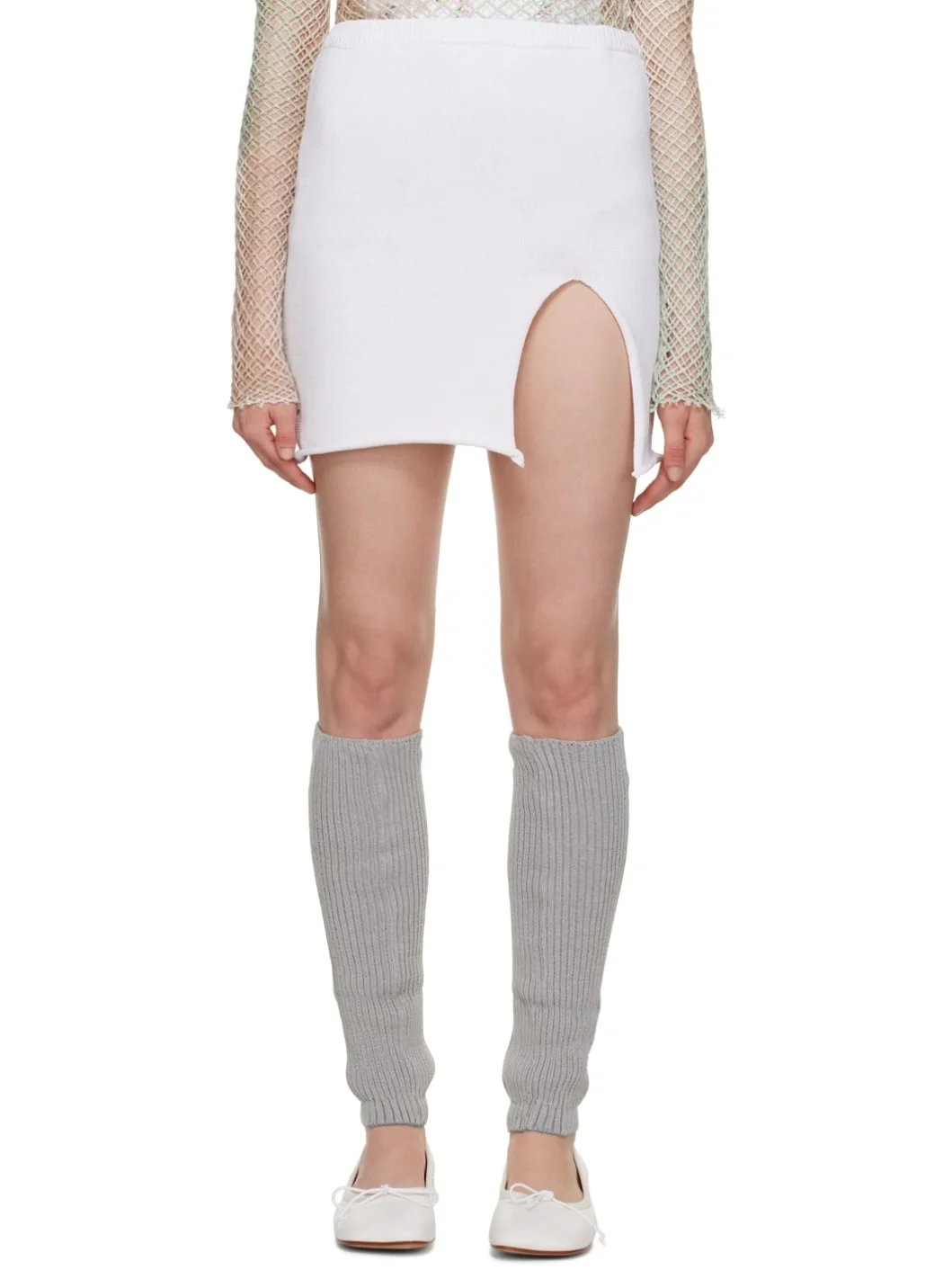 Knit cotton-blend skirt. · Rib knit elasticized waistband · Vent at rolled hem Supplier color: White 55% cotton, 45% polyester. Made in South Korea 231731F090007