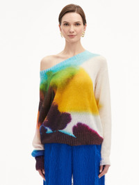 Drawing its inspiration from Co-Creative Director Fernando Garcia's watercolor paintings, this knit pullover celebrates the inherent refinement of nature. With a relaxed silhouette and wide-ribbed trim, this piece is sure to elevate your every day. Details - Long Sleeves - Off Shoulder - Pullover Style - Oversized Silhouette - Ribbed Trim - Unlined - Style Code: 25RN172ATD_LPM Materials & Care - 55% Mohair, 35% Nylon, 10% Wool
