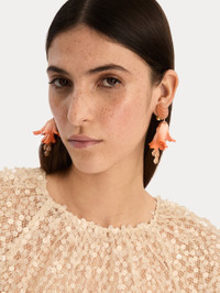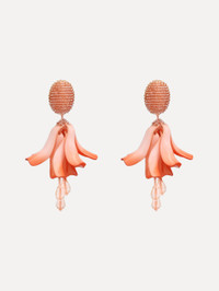 A perennial favorite, these earrings capture the graceful form of the impatiens blossom in full bloom. Sculpted petals cascade with fluid movement, anchored by a beaded stud and finished with delicate crystal drops. Details - Dimensions: 8.3 cm x 4 cm - Weight: 18 grams - Clip Back with Comfort Pads - Country of Origin: India - Style Code: R26J199_APR Materials & Care - 55% Acrylic, 20% Glass, 10% Viscose, 10% Polyester, 5% Brass - Avoid exposing your jewelry to harsh chemicals. - Lotions, cosmetics, hairspray and perfumes can cause chemical reactions that can cause the finish to deteriorate. - Before handling, washing hands after applying makeup and hair products will help to preserve the finish. - Do not wear in the pool, on the beach or in the shower. - Wipe away dirt and body oils with a slightly damp microfiber jewelry cloth or cotton ball and allow to dry. - Store separately in cloth pouches or small boxes to minimize scratching.