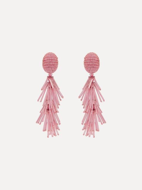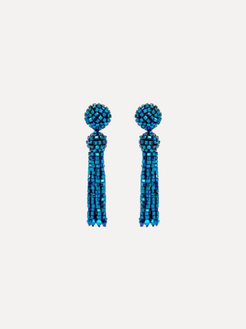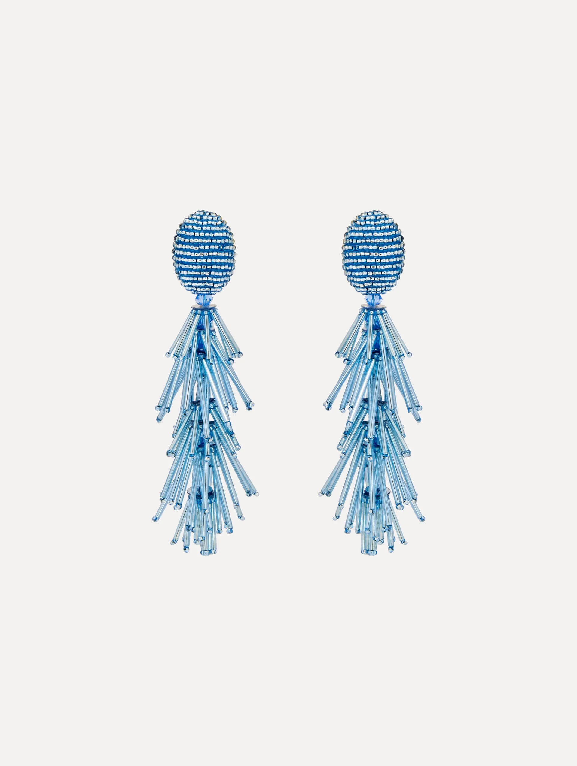 These tassel earrings cascade in sculptural strands of icy blue, each bead carefully strung to catch the light. Finished with a beaded post for a touch of texture, they bring playful charm to any look. Details - Dimensions: 9 cm x 2.5 cm - Weight: 20 grams - Clip Backs with Comfort Pads - Style Code: F25J181_BLU - Country of Origin: India Materials & Care - - 75% Glass, 5% Silk, 5% Polyvinyl Chloride, 10% Polyester, 5% Brass - - Avoid exposing your jewelry to harsh chemicals. - - Lotions, cosmetics, hairspray and perfumes can cause chemical reactions that can cause the finish to deteriorate. - - Before handling, washing hands after applying makeup and hair products will help to preserve the finish. - - Do not wear in the pool, on the beach or in the shower. - - Wipe away dirt and body oils with a slightly damp microfiber jewelry cloth or cotton ball and allow to dry. - - Store separately in cloth pouches or small boxes to minimize scratching.